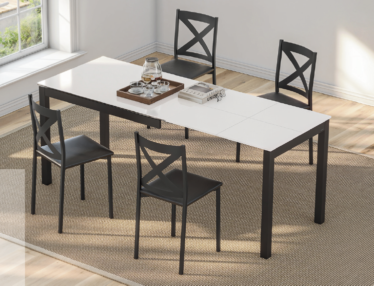 Extansible en Laminado Blanco , Mármol blanco, o Mármol negro, Roble Antic, de 70cm en la mesa de 100cm y de 80cm en la de 110 y 120cm