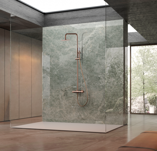 Barra de Ducha Monomando Oro Rosa Cepillado – Serie Line | IMEX