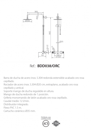 SKU: BDD038/ORC | Categoría: Conjunto Ducha | Etiqueta: Oro Rosa Cepillado