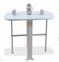 Chasis y patas: Tubo de acero pintado en epoxi o cromado. Patas de 5x5 cm. Sistema de apertura: Lateral con desplazamiento de patas (guías metálicas telescópicas). Doble extensible de 30 + 30 en cristal. Patas con ruedas para facilitar la apertura. Encimera y extensible: Cristal. Características cristal: templado de seguridad 8 mm.