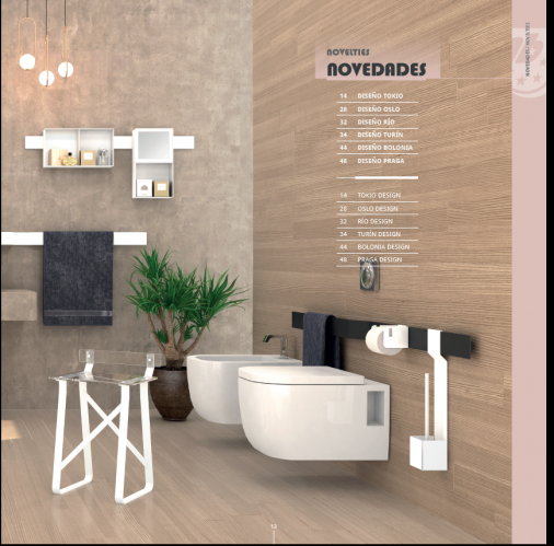 En este nuevo catálogo se aprecia una clara evolución en los diseños de jaboneras, banquetas, complementos de suelo y complementos de pared, donde la perfección del diseño propio se combina con la elegancia de la sencillez. Cada pieza ha sido concebida para integrarse con armonía en los espacios de baño contemporáneos.