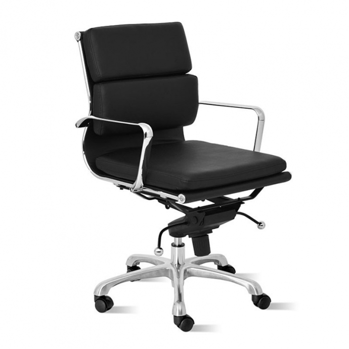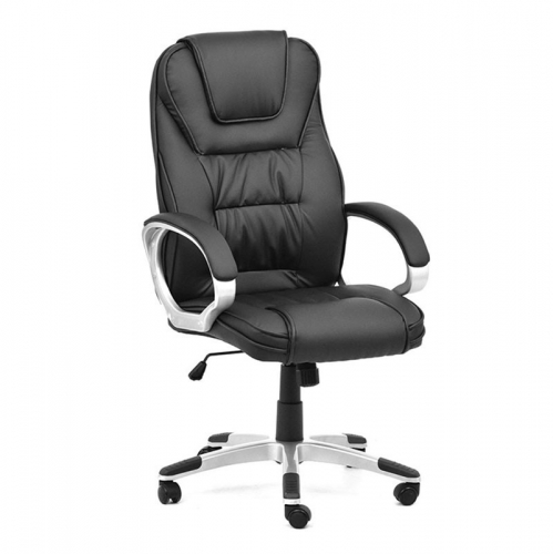 Sillón de oficina regulable en altura mediante pistón de gas con sistema tipo balancín con regulación de dureza de la inclinación y bloqueo. Asiento ergonómico extra acolchado y tapizado en polipiel de alta calidad y resistencia al desgaste. Las ruedas son aptas para su uso en suelos de parquet. Disponible en negro o gris a elegi
