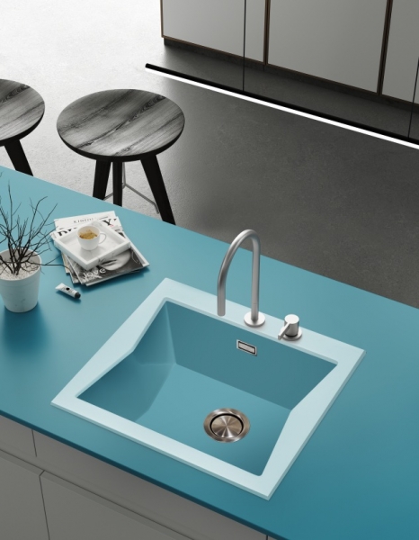 cocinas. Fabricados con resinas isoftálicas endurecidas con microesferas de vidrio, cuarzos y marmolinas, los fregaderos SYAN destacan por su elevada
